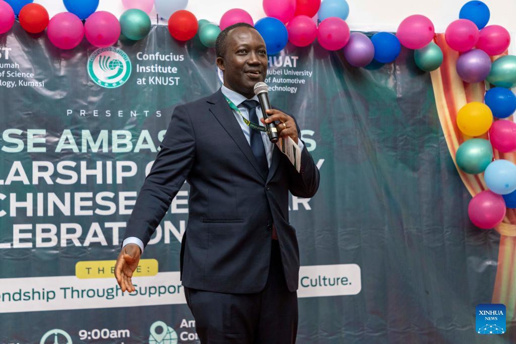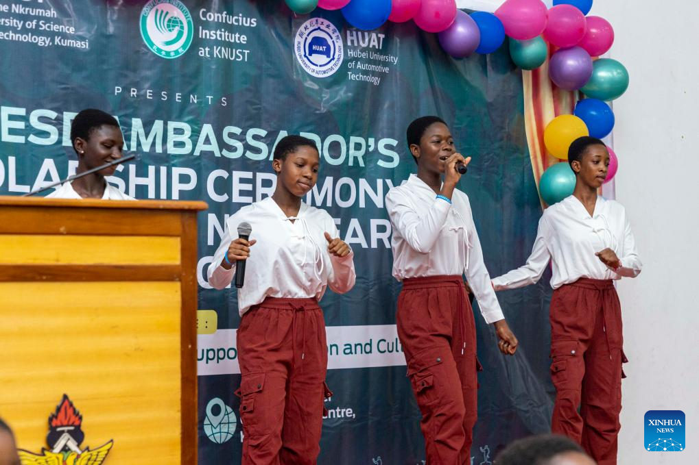 Acra, 31 jan (Xinhua) -- O Instituto Confúcio da Universidade de Ciência e Tecnologia Kwame Nkrumah (KNUST, na sigla em inglês), em colaboração com a Embaixada da China em Gana, concedeu na sexta-feira a 71 cadetes da KNUST a Bolsa de Estudos do embaixador da China em Kumasi, a segunda maior cidade de Gana.