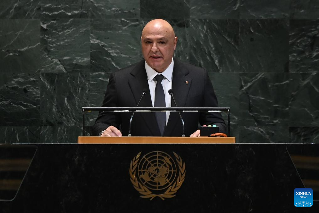 O presidente libanês, Joseph Aoun, discursa no Debate Geral da 80ª sessão da Assembleia Geral das Nações Unidas (AGNU) na sede da ONU em Nova York, 23 de setembro de 2025. (Xinhua/Li Rui)