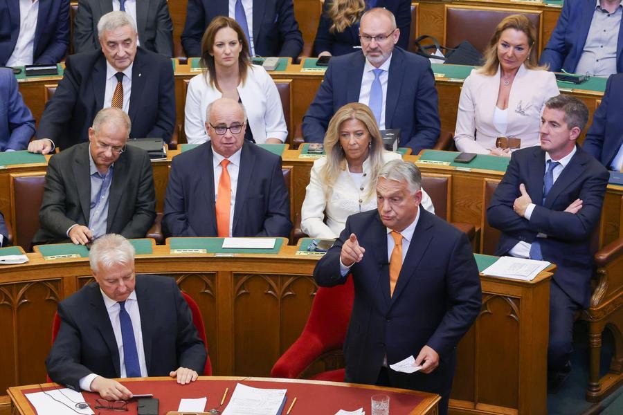 O primeiro-ministro húngaro, Viktor Orbán, discursa na sessão de outono do Parlamento húngaro em Budapeste, Hungria, em 22 de setembro de 2025. (Foto por Attila Volgyi/Xinhua)