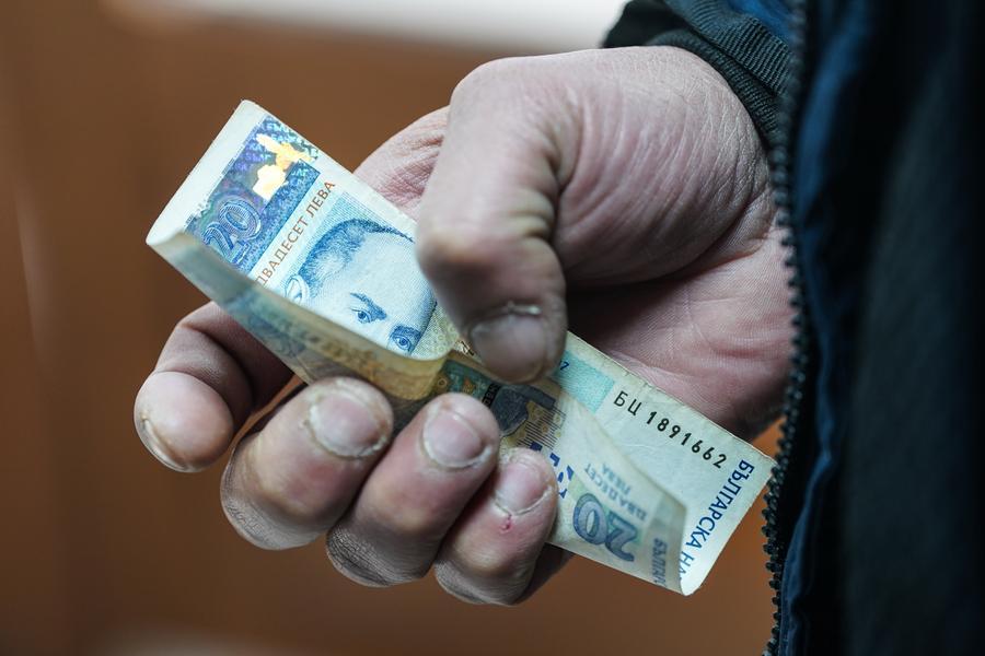 Cidadão segura nota em lev búlgaro durante pagamento em Sófia, Bulgária, em 31 de dezembro de 2025. (Xinhua/Peng Ziyang)
