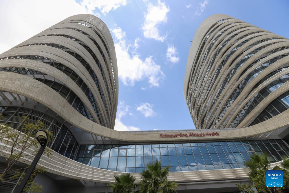 Foto tirada em 3 de novembro de 2025 mostra edifício principal da sede do CDC África, construído pela China, na capital da Etiópia, Adis Abeba. O Centro Africano de Controle e Prevenção de Doenças (CDC África) e o Centro Chinês de Controle e Prevenção de Doenças (CDC China) lançaram conjuntamente na segunda-feira uma oficina de treinamento com duração de três semanas para aprimorar a capacidade de saúde pública em toda a África. (Foto por Michael Tewelde/Xinhua)