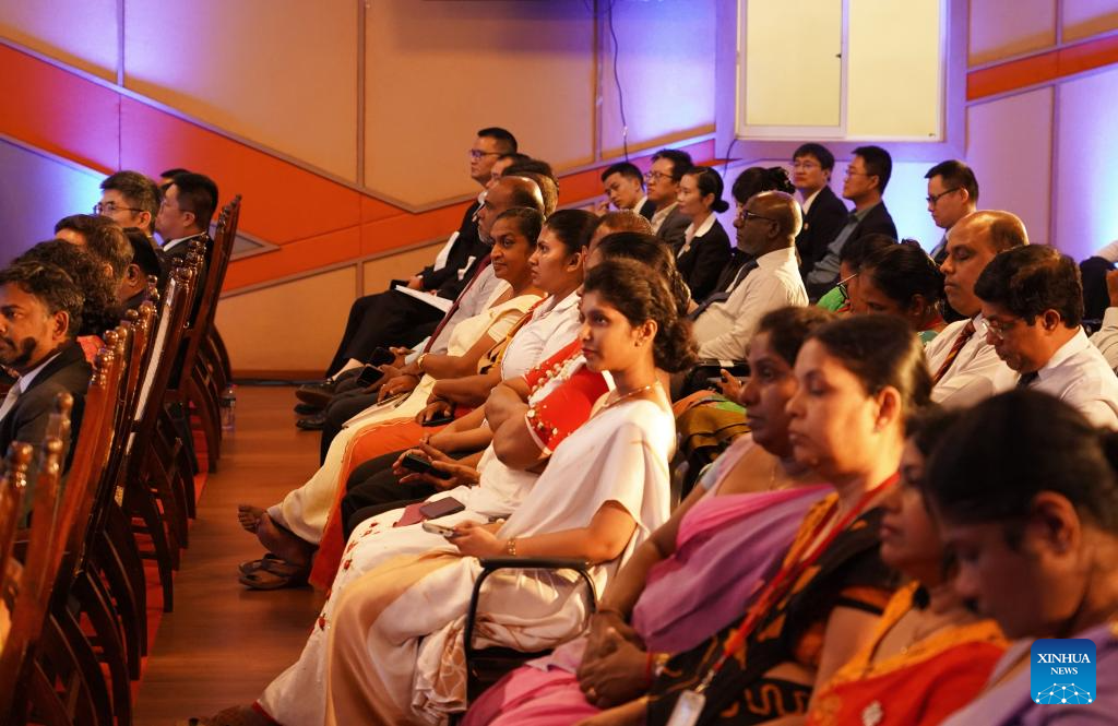 Foto tirada em 14 de janeiro de 2026 mostra a cerimônia de inauguração de um projeto lançado pela China e pelo Sri Lanka com o objetivo de promover a transformação digital da educação básica, em Colombo, Sri Lanka. O projeto ajudará o Sri Lanka a construir um centro de dados em nuvem para a educação, um centro de conferências multimídia e um hub de mídia de streaming.