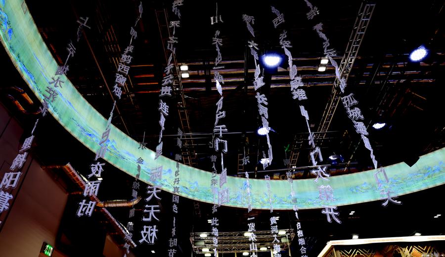 Foto tirada em 4 de novembro de 2025 mostra vista de "poemas chineses" no pavilhão da China no Mercado Mundial de Viagens (WTM, na sigla em inglês) Londres 2025, em Londres, Reino Unido. O WTM Londres 2025 foi inaugurado na terça-feira, com o pavilhão da China chamando atenção por seus abundantes recursos turísticos e apelo cultural. (Xinhua/Li Ying)