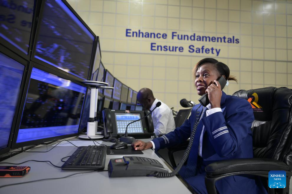 Damaris Mutinda trabalha no Centro de Despacho Ferroviário da Ferrovia Mombasa-Nairobi de Bitola Padrão (SGR, na sigla em inglês) da Kenya Railways em Nairóbi, Quênia, em 30 de setembro de 2025. (Xinhua/Yang Guang)