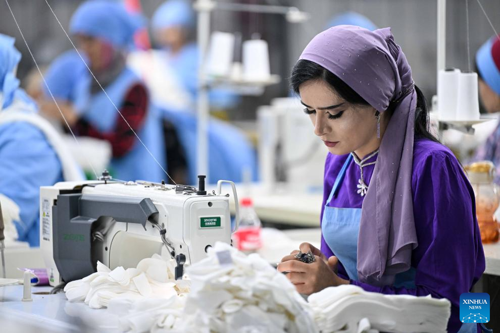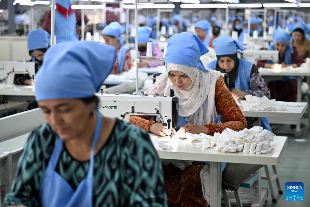 Trabalhadoras no Parque Industrial Agrícola e Têxtil China-Tadjiquistão de Danghara em Danghara, Tadjiquistão, em 12 de setembro de 2025. (Xinhua/Li Renzi)
