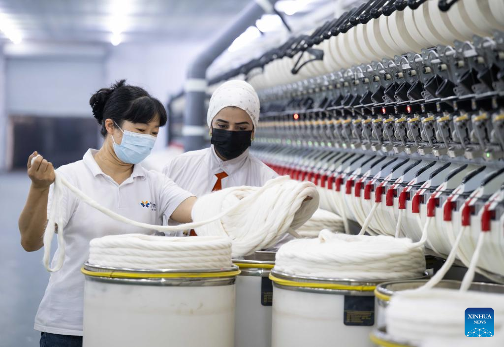 Trabalhadores no Parque Industrial Agrícola e Têxtil China-Tadjiquistão Danghara em Danghara, Tadjiquistão, em 12 de setembro de 2025. (Xinhua/Li Renzi)