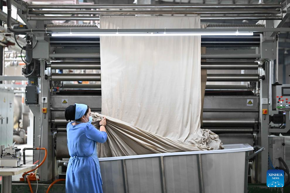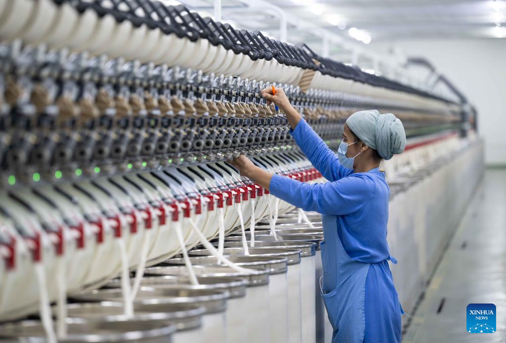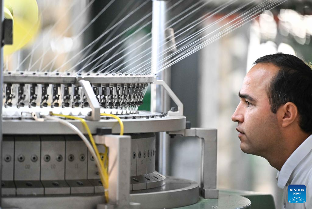 Trabalhador tadjique inspeciona equipamentos no Parque Industrial Agrícola e Têxtil China-Tadjiquistão Danghara em Danghara, Tadjiquistão, em 12 de setembro de 2025. (Xinhua/Li Renzi)
