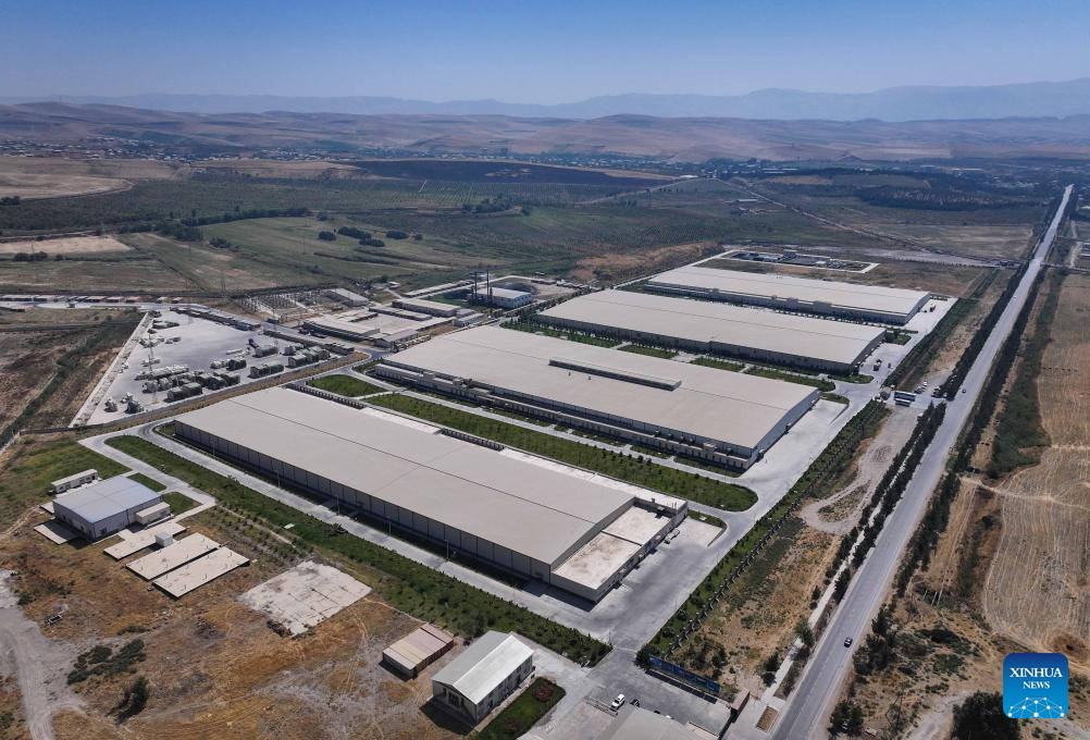Foto aérea de drone tirada em 12 de setembro de 2025 mostra o Parque Industrial Agrícola e Têxtil China-Tadjiquistão de Danghara, em Danghara, Tadjiquistão. (Xinhua/Li Renzi)