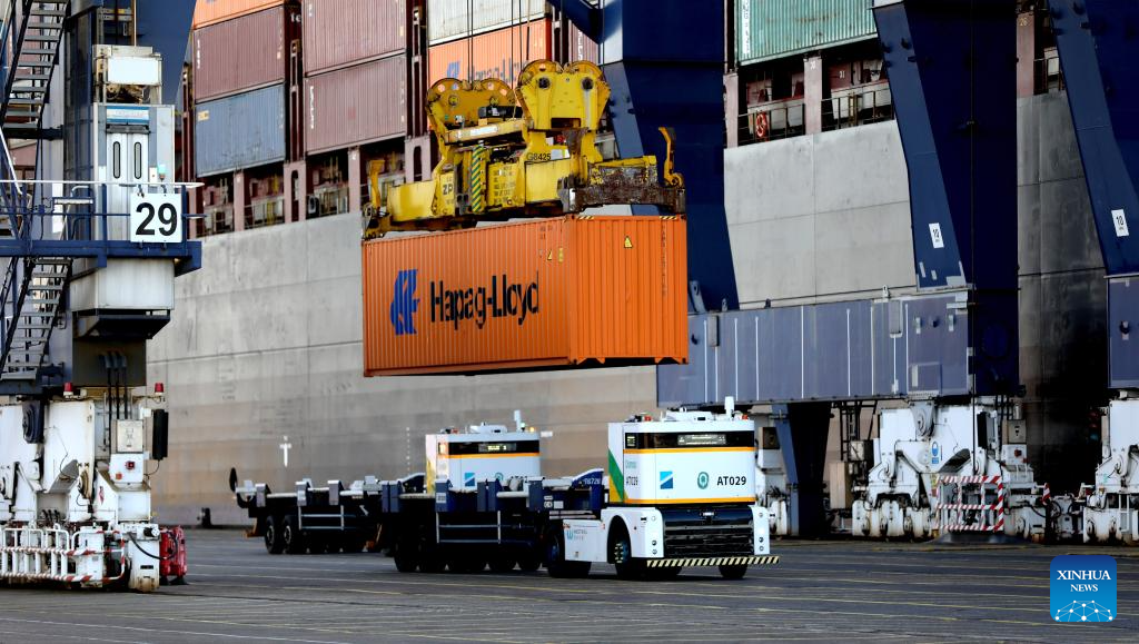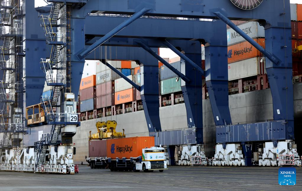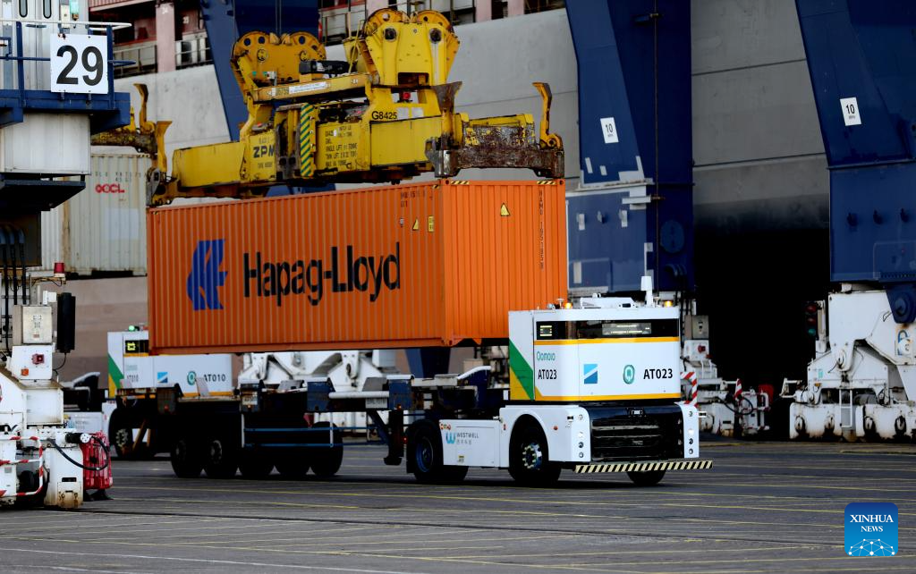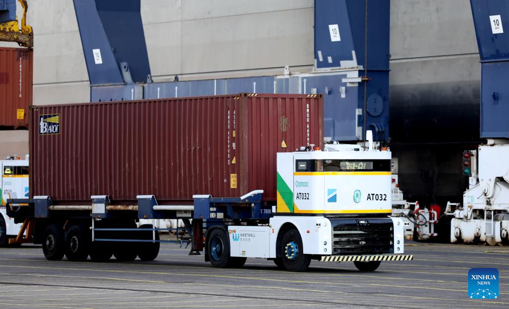 Londres, 21 nov (Xinhua) -- Enquanto um vento frio de novembro soprava pelo Porto de Felixstowe, um novo comboio de caminhões elétricos autônomos da empresa chinesa Westwell andava silenciosamente pelo Terminal Ferroviário Norte, marcando a chegada de um segundo lote de unidades autônomas ao maior porto do Reino Unido.