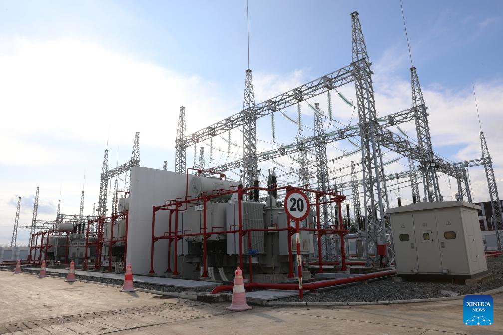 Subestação de um projeto de energia eólica offshore construído pela Power Construction Corporation of China (PowerChina) é mostrada em Binh Dai, província de Vinh Long, Vietnã, em 14 de outubro de 2025. (Xinhua/Liu Ying)