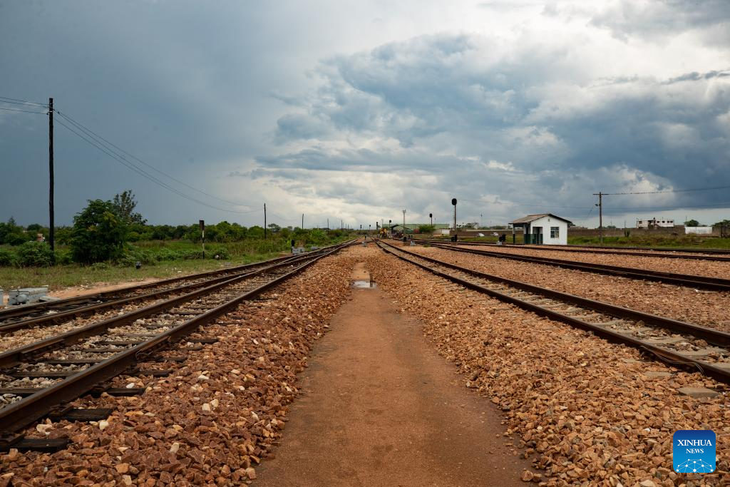 Foto tirada em 14 de novembro de 2025 mostra trilhos da ferrovia na Estação Ferroviária de New Kapiri Mposhi, na província Central, Zâmbia. (Xinhua/Peng Lijun)