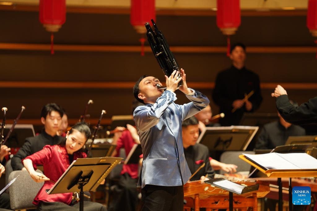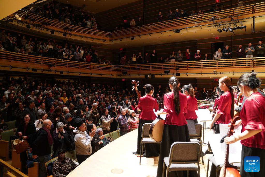 Filadélfia, Estados Unidos, 29 jan (Xinhua) -- Sob as luzes brilhantes do Centro Kimmel de Artes Cênicas, os sons das tradições musicais chinesas e ocidentais se misturaram harmoniosamente na quarta-feira, encantando o público americano.
