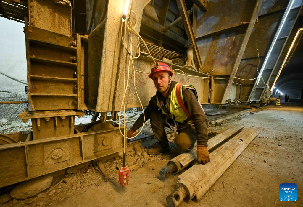 Trabalhador no canteiro de obras do trecho da segunda fase da Rodovia China-Tadjiquistão, perto de Kalai Khumb, Tadjiquistão, em 11 de setembro de 2025. A Rodovia China-Tadjiquistão, também conhecida como Rodovia Pamir, foi construída na década de 1940. Com mais de 1.000 km de extensão, de Dushanbe a Karasu, na fronteira entre a China e o Tadjiquistão, ela é vital para o transporte e as conexões externas do Tadjiquistão. (Xinhua/Li Renzi)