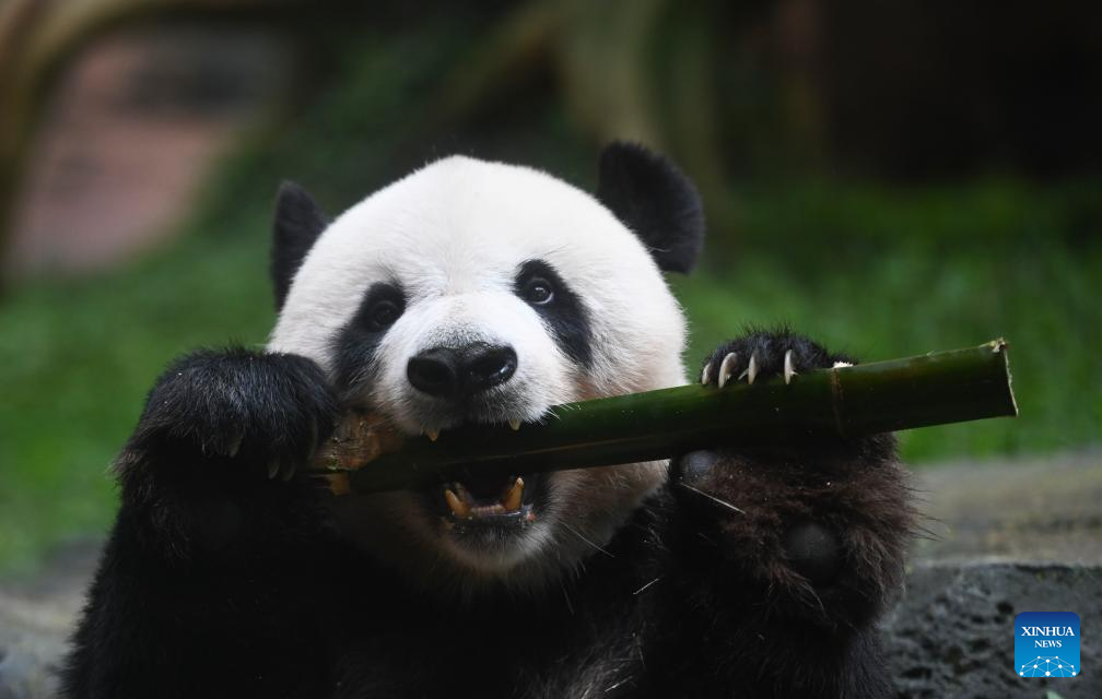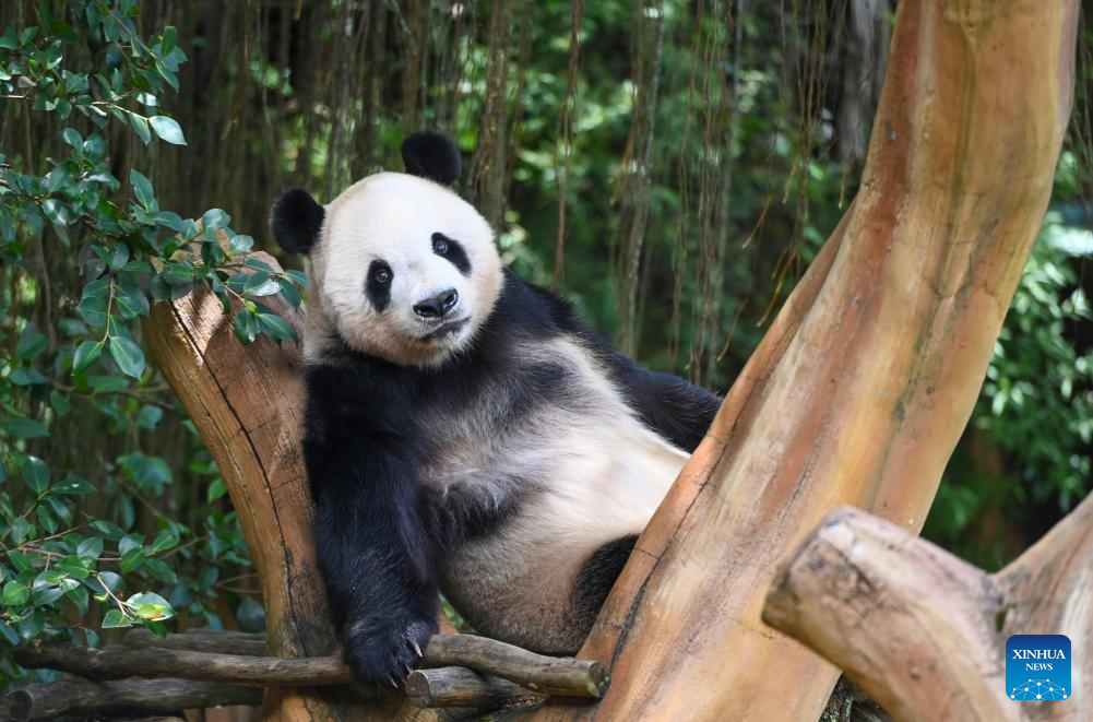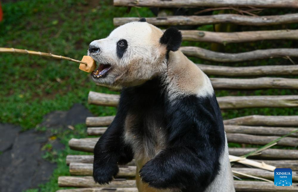 O panda gigante Cai Tao é visto no Palácio dos Pandas no Taman Safari Indonésia em Bogor, província de Java Ocidental, Indonésia, em 7 de novembro de 2025. (Xinhua/Zulkarnain)