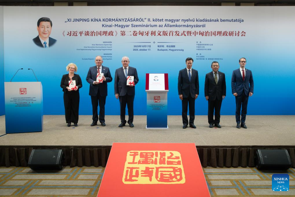 Budapeste, 17 out (Xinhua) -- O evento de lançamento da edição húngara do segundo volume de "Xi Jinping: A Governança da China" e o Simpósio China-Hungria sobre Governança Estatal foram realizados na sexta-feira, com a presença de mais de 200 representantes de diversos setores de ambos os países.