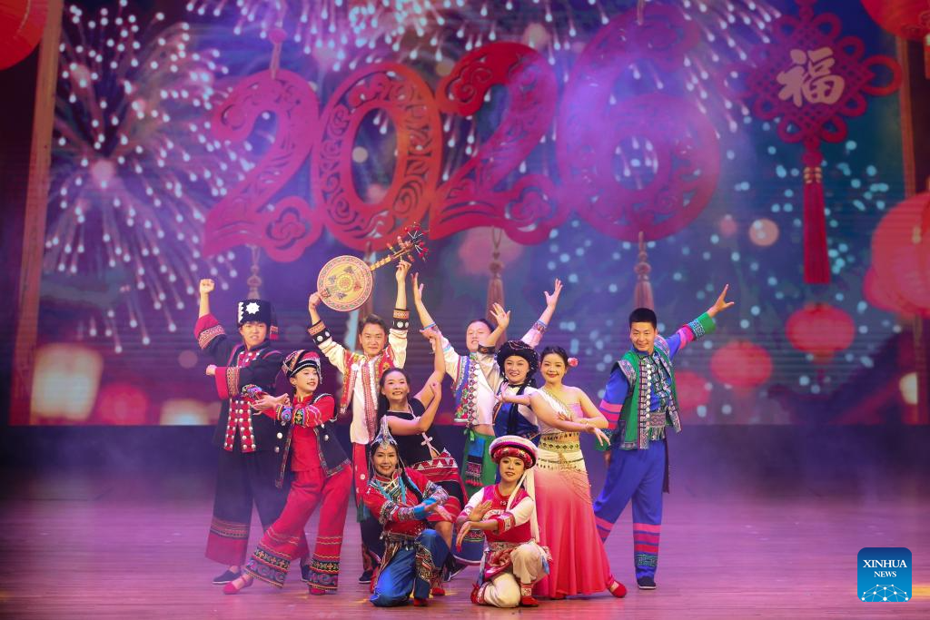Artistas se apresentam em um evento de comemoração do Ano Novo Chinês em Rangum, Mianmar, em 5 de fevereiro de 2026. A Embaixada da China em Mianmar realizou as comemorações do Ano Novo Chinês no Teatro Nacional de Rangum na quinta e sexta-feira. (Xinhua/Myo Kyaw Soe)