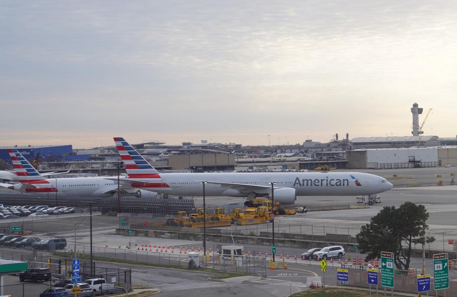 Aviões são vistos no Aeroporto Internacional John F. Kennedy (JFK) na cidade de Nova York, Estados Unidos, em 5 de novembro de 2025. (Xinhua/Zhang Fengguo)