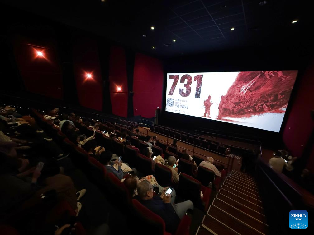 Pessoas assistem à estreia do filme "Evil Unbound" em um cinema em Los Angeles, Estados Unidos, em 18 de setembro de 2025. "Evil Unbound", um filme de produção chinesa que retrata as atrocidades cometidas pela notória Unidade 731 de guerra biológica japonesa na Segunda Guerra Mundial, estreou em Los Angeles na quinta-feira. (Xinhua/Gao Shan)