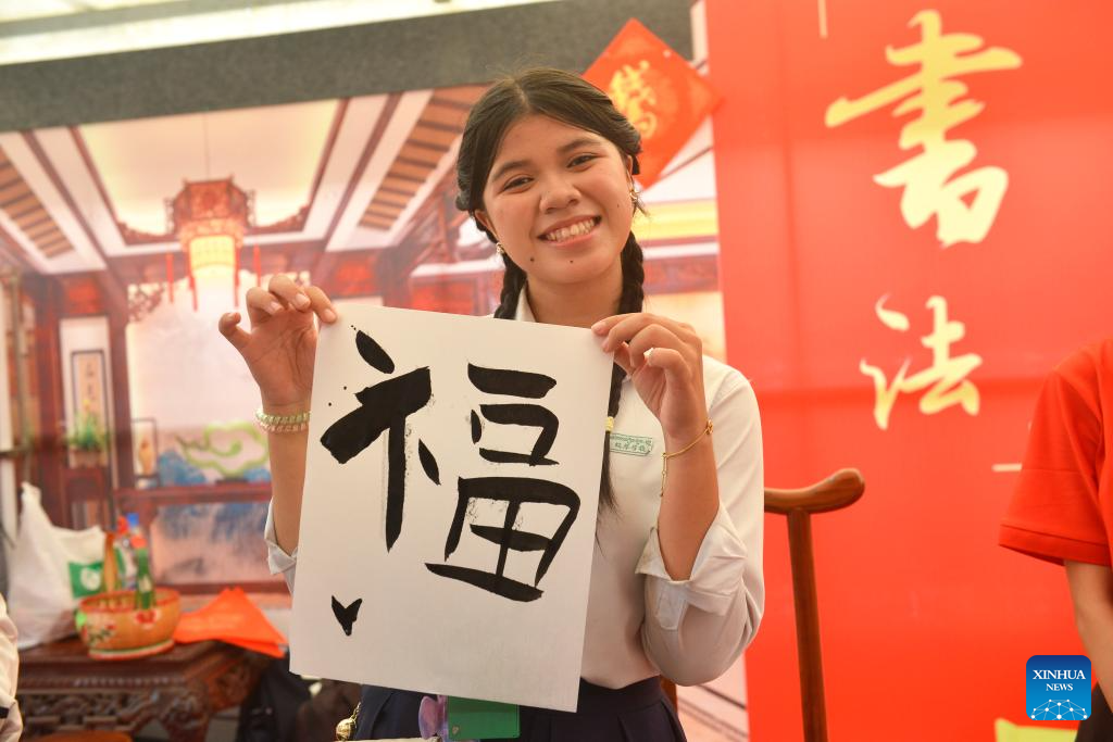 Com duração de sexta a domingo, o evento cultural de três dias foi projetado para proporcionar aos participantes a oportunidade de vivenciar a rica tapeçaria do Ano Novo Chinês. (Foto de Phearum/Xinhua)