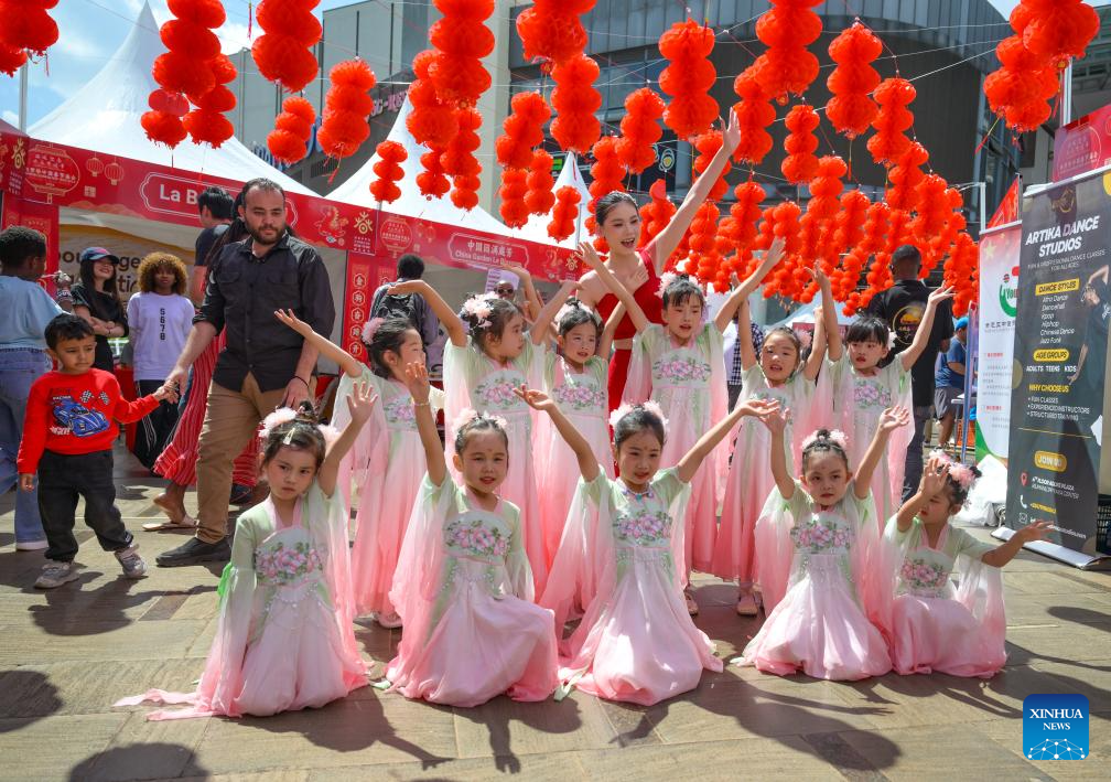 O evento, que durou o dia todo e foi realizado no Shopping Two Rivers, contou com apresentações culturais como danças do dragão e do leão, música contemporânea e mostras de trajes e culinária chinesa. (Xinhua/Xie Jianfei)