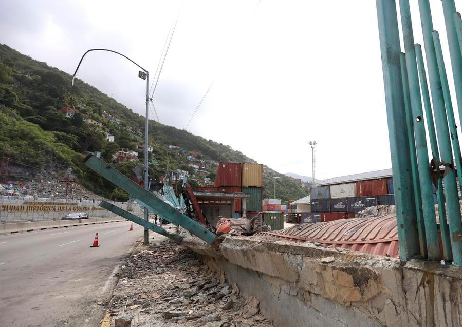 Foto tirada em 3 de janeiro de 2026 mostra danos causados ​​por um ataque aéreo no porto de La Guaira, na Venezuela. (Str/Xinhua)