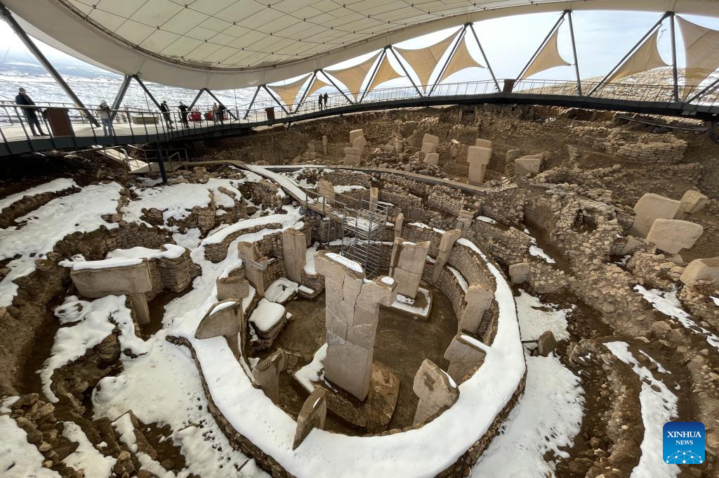 Turistas visitam o sítio arqueológico de Gobeklitepe, na província de Sanliurfa, Turquia, em 28 de janeiro de 2026. (Mustafa Kaya/Divulgação via Xinhua)