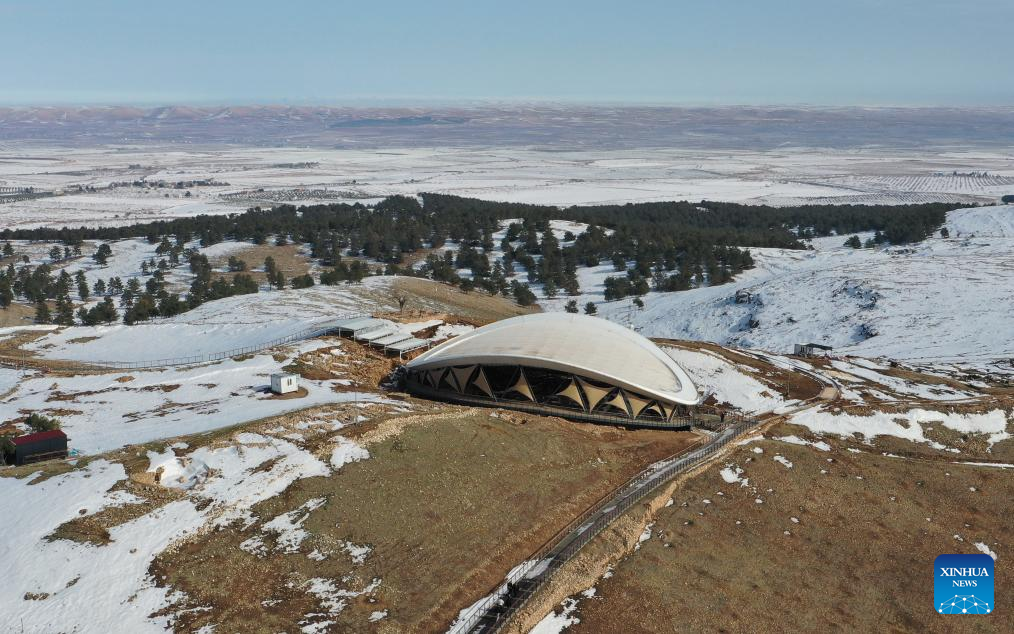 Foto de drone tirada em 28 de janeiro de 2026 mostra uma vista do sítio arqueológico de Gobeklitepe, na província de Sanliurfa, Turquia. (Mustafa Kaya/Divulgação via Xinhua)