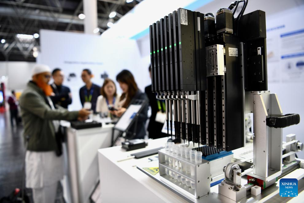 Pipetadora automática é exibida na área de exposição da Keyto na Medica 2025 em Düsseldorf, Alemanha, em 17 de novembro de 2025. Uma importante feira de dispositivos médicos começou na segunda-feira em Düsseldorf, Alemanha, com a participação de mais de 1.300 empresas chinesas. A Medica 2025 é uma das maiores e mais influentes feiras de dispositivos médicos. Esperando cerca de 80.000 visitantes de mais de 160 países e regiões, o evento deste ano focou em tecnologia e dispositivos médicos, saúde digital, laboratório e diagnóstico, tecnologia fisioterapêutica e descartáveis. Entre os participantes de todo o mundo, o número de empresas chinesas foi o maior entre os países não europeus. Segundo a organização, cerca de 70 países e regiões participaram da Medica 2025, que acontecerá até 20 de novembro. (Xinhua/Zhang Haofu)
