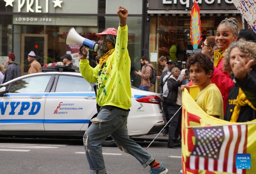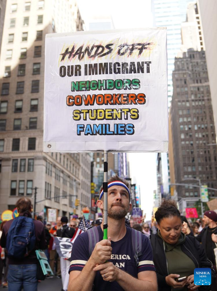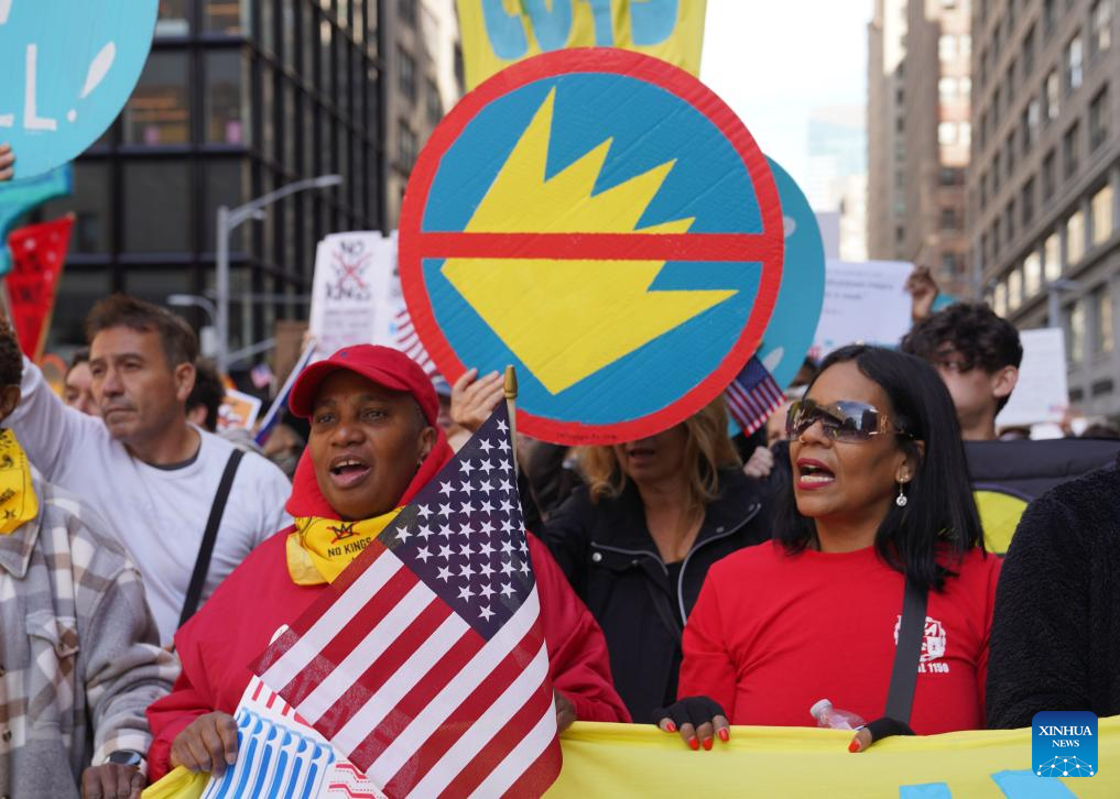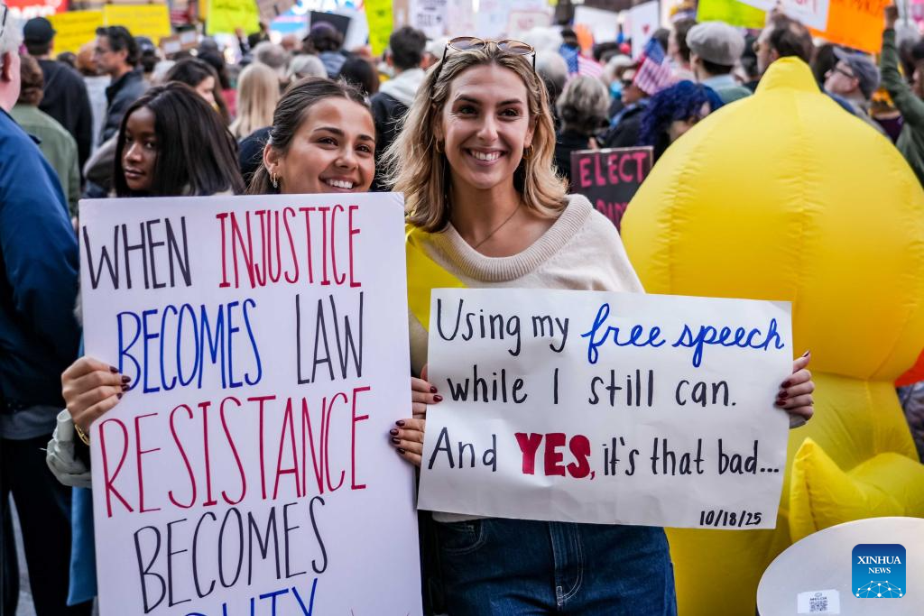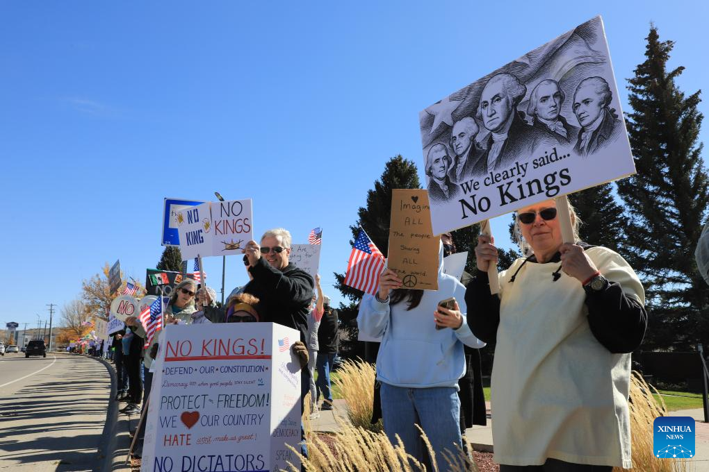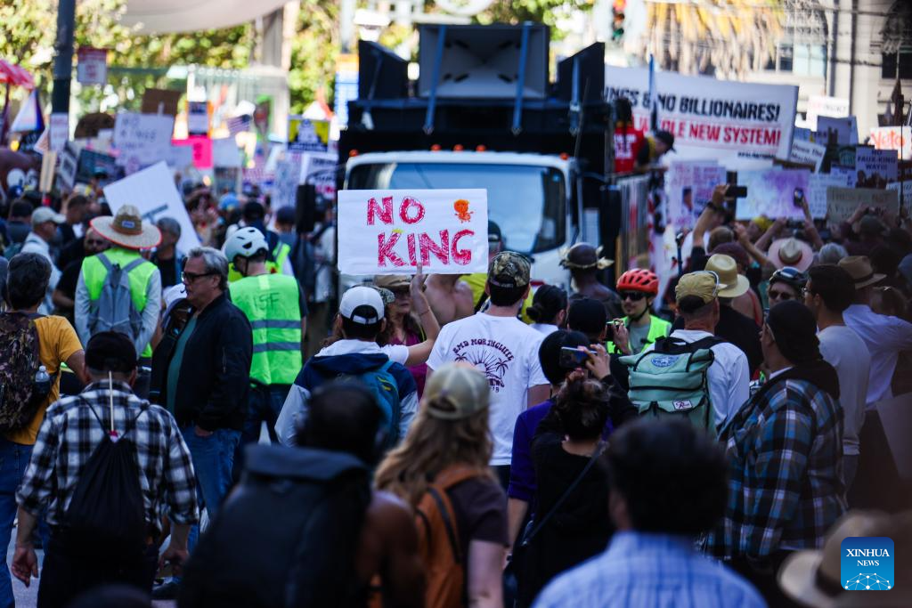Nova York/São Francisco, 18 out (Xinhua) -- Milhares de pessoas foram às ruas em 2.700 cidades e vilas americanas no sábado para a segunda rodada dos protestos nacionais "No Kings" ("Sem Reis", em tradução livre), a maior manifestação em um único dia na história americana.