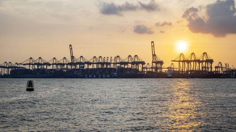 Navio cargueiro atracado no Terminal de Contêineres de Pasir Panjang, em Cingapura, em 8 de setembro de 2023. A Iniciativa de Demonstração de Conectividade Estratégica China-Cingapura (Chongqing) foi lançada em 2015. É a terceira iniciativa de cooperação desse tipo entre China e Cingapura. (Foto por Then Chih Wey/Xinhua)