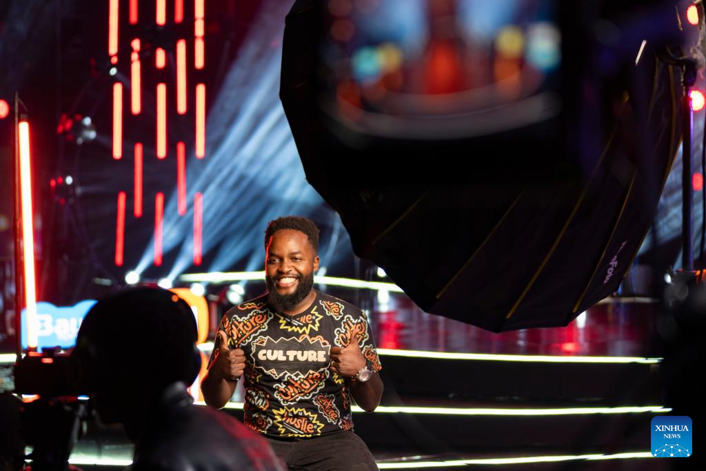 Fanuel Mulwa dá entrevista na final do Sing for Africa, um concurso de talentos musicais apoiado pela China, em Nairóbi, Quênia, em 29 de dezembro de 2025. (Xinhua/Yang Guang)