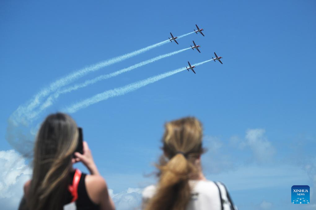 Cingapura, 3 fev (Xinhua) -- A 10ª edição do Salão Aeronáutico de Cingapura começou na terça-feira no Centro de Exposições Changi, com demonstrações aéreas, incluindo uma da Equipe Acrobática Bayi da Força Aérea do Exército de Libertação Popular da China (PLA, na sigla em inglês).