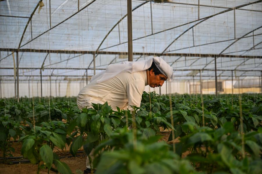 O agricultor kuwaitiano Sari Al-Azmi trabalha em sua fazenda na província de Ahmadi, Kuwait, em 31 de outubro de 2025. (Xinhua/Liu Lei)