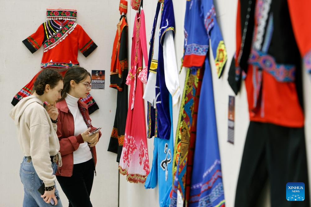 Bucareste, 12 nov (Xinhua) -- Uma exposição que apresenta trajes tradicionais de grupos étnicos minoritários da China foi inaugurada na terça-feira no Palácio do Parlamento em Bucareste, atraindo moradores locais e turistas.