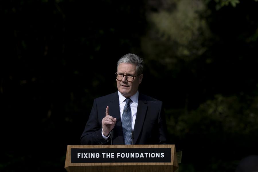 O primeiro-ministro do Reino Unido, Keir Starmer, discursa no jardim do nº 10 da Downing Street, em Londres, Reino Unido, em 27 de agosto de 2024. (Simon Dawson/Nº 10 Downing Street/Divulgação via Xinhua)